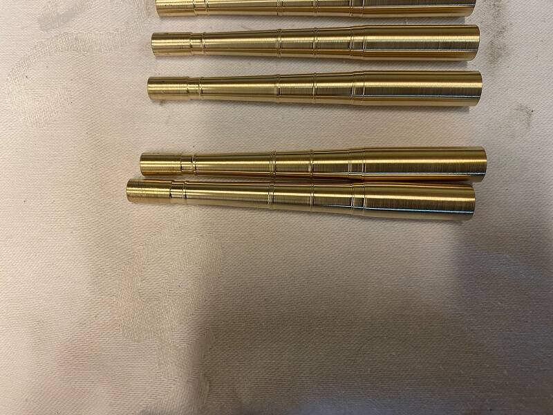 The pictures below show the different stages of the turning process. I don't work with CNC, etc., so everything is counting, counting and counting. The 10th photo shows the differences in the three types of 12 Pound Guns. It only differs by a few millimeters at this scale, but the difference can be seen up close.