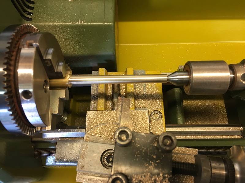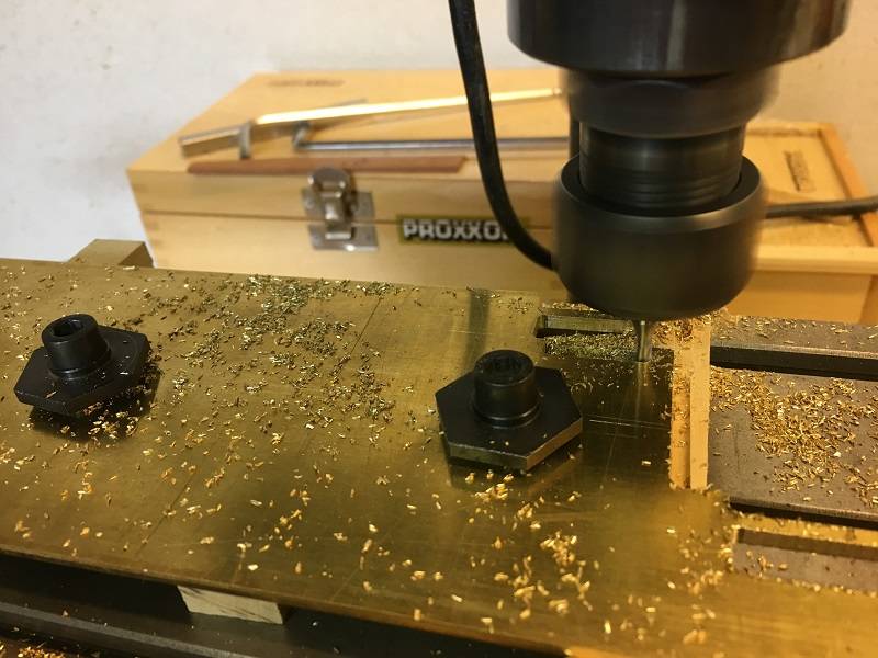 I started with the hinged parts where the rudder will hang in. First I made the bushings where the hinge pins of the rudder come in. These bushings are milled in so that the hole is just at the right distance.