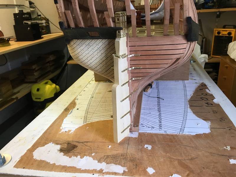 The rudder is in place for the time being. Finally, I have to make the hinge parts that will come on the rear mirror and hold the rudder in place. To do this, the "Stern Post" also needs to be adjusted. The hinge parts run over the V-shape again tightly.