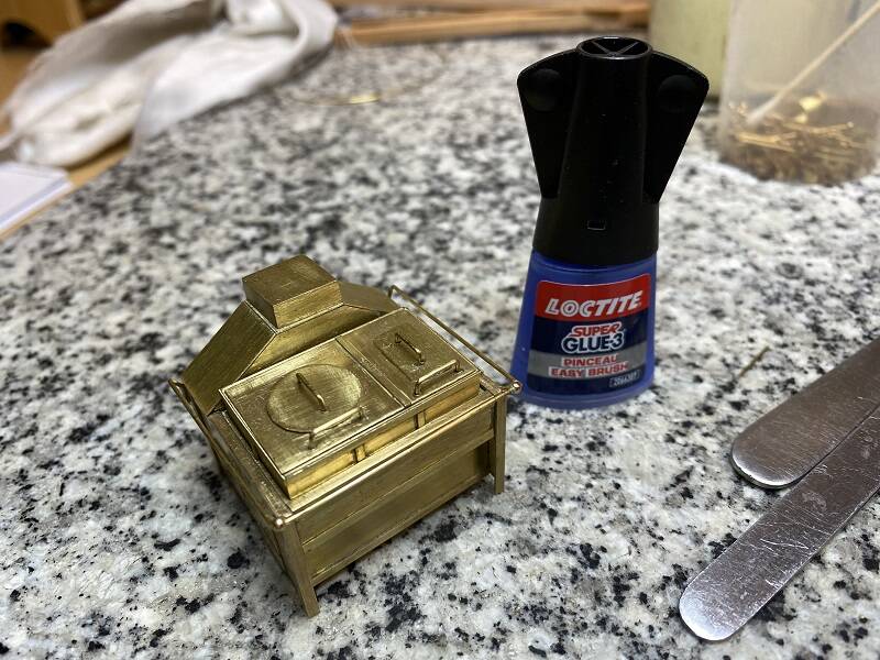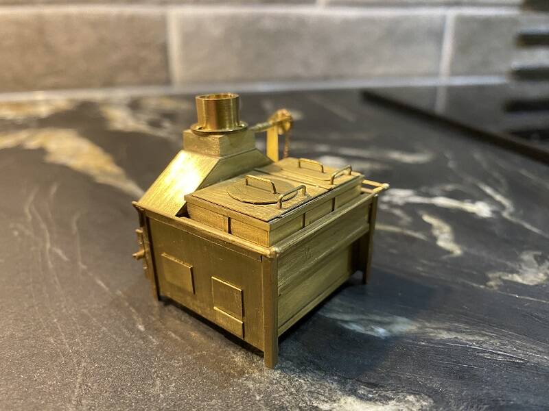 Because the furnishing of 'The Middle Deck' is almost finished, the 'The Brodie Stove' has to be finished. Now you can recreate the model down to the last detail, but I didn't want that. Editing brass isn't really my thing and I'm afraid I'd rather mess it up if I make too many details about it. Besides that it will be fixed in place and then it won't really be possible to take a closer look.