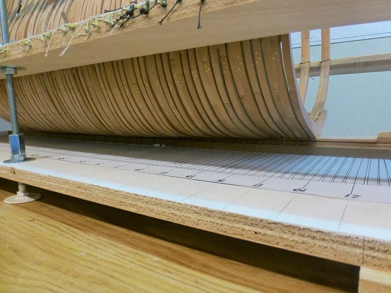 Today I raised the rear of the keel. After section 19, section 21 only placed on the keel. Frame 117 should be at the front of the increase. This weekend first making the timber on thickness for the Transomframes. Because the space is now beginning to be tight, first produce these frames.... To be continued.