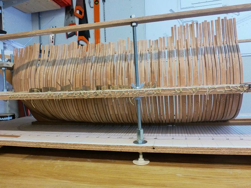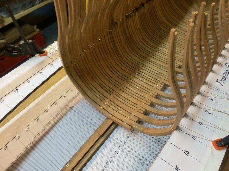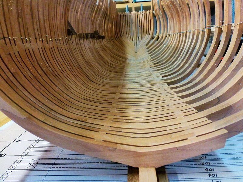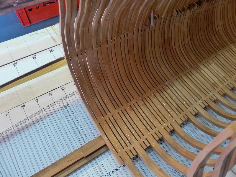The frames 106 t / m 109 of section 17 are almost ready, the brass pins are in it. The frames are sanded in the coming days and placed on the keel.