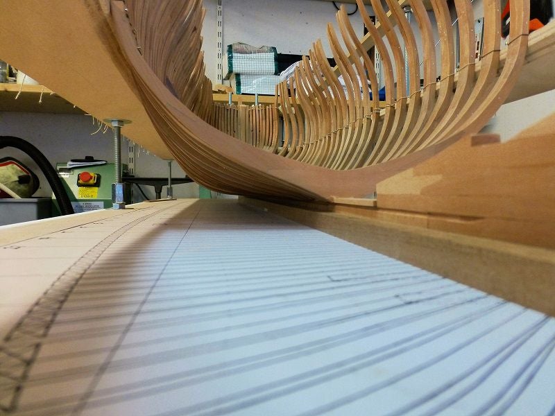 Today I have a small highlight in this project. After more than 13 months to build frames, is now the 100th frame on the keel. Yesterday all frames 98 t / m 101 of section 13 placed on the keel and this morning everything sanded and polished. I have checked the inside lines for five times and all the lines run perfectly.