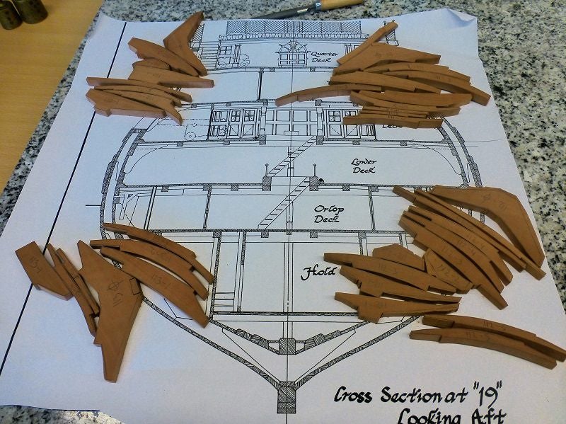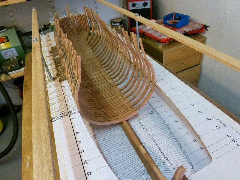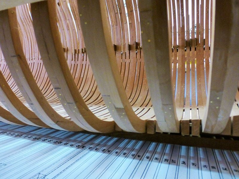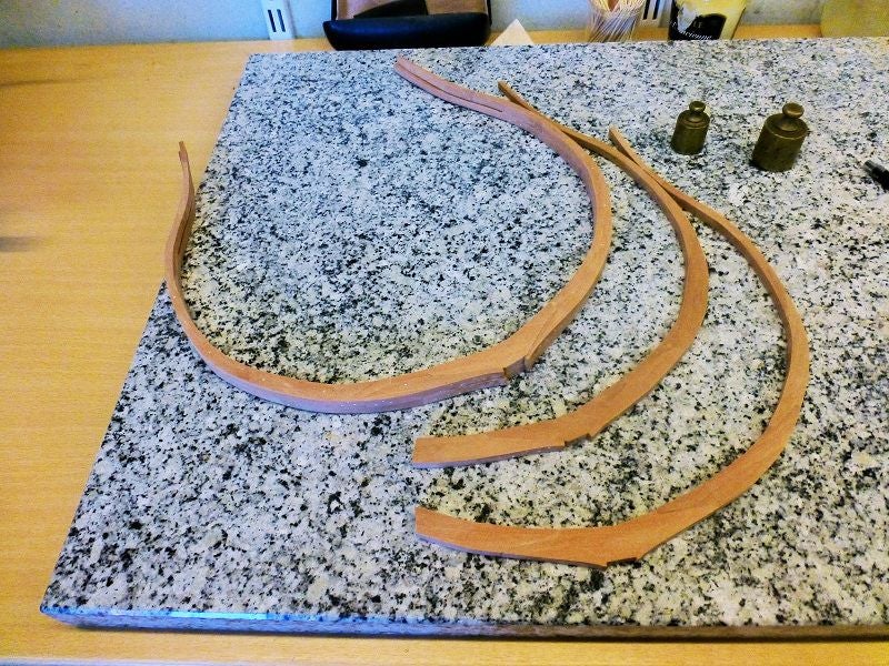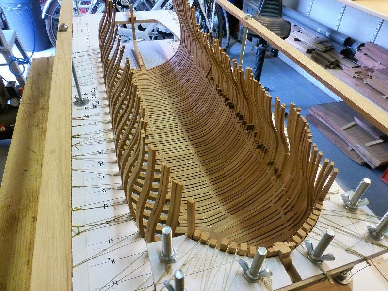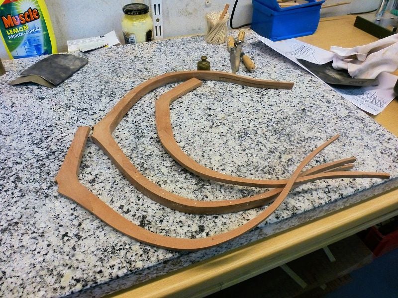 But first start with the Transomspanten at the rear. The wood is already in thickness. These frames also consist of multiple parts.