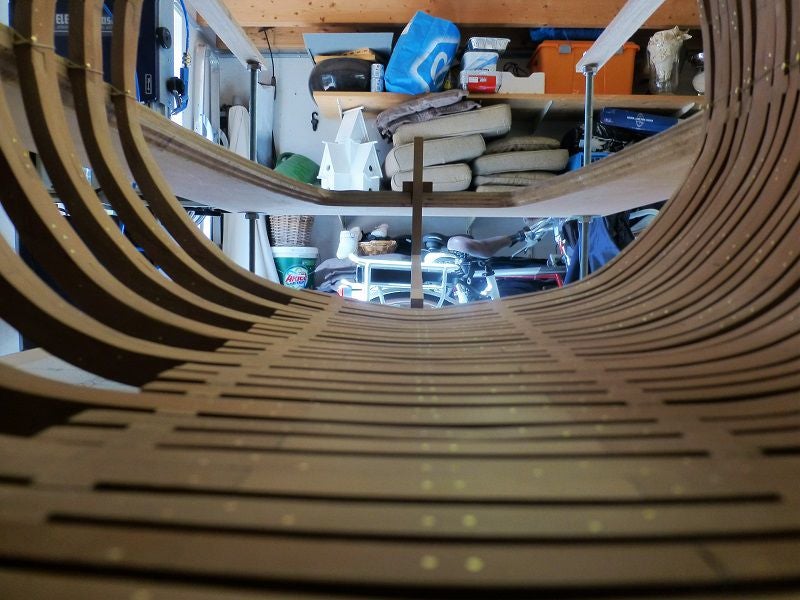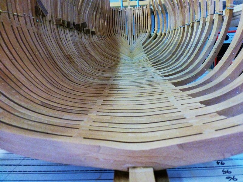 The frames of Section 15 have been placed on the keel. Everything is sanded and polished on the inside. She is now starting to get very impressive, there are now more than 90 cm frames in a row and then I have a little more than two thirds completed. It is therefore becoming more and more fun to build it.