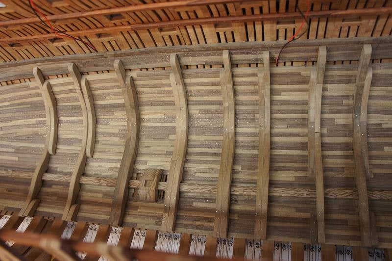 The first 2 decking beams have been assembled and placed on the beam weighers of the week. It took almost a whole day before the first decking beam was placed, but it is now in the right place. Somehow or other, I never trust myself when placing the first part and I have to check everything up to ten times.