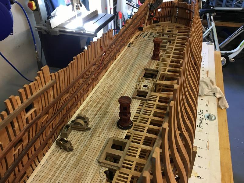 For the time being I can continue with planking the deck and the dust on the bottom pictures I will remove as soon as possible.