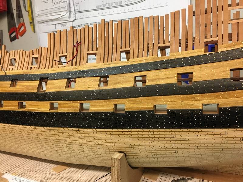 When building Vic I assumed that I only build what is attached to the ship. There was no discussion about the fact that therefore also the hatches should be fitted. It started with the last visit of Jan Zwart, who indicated that the guns are actually stuck to the wall. The breeching rope cannot be removed easily, etc. So my wife had heard the latter and, after Jan's visit, she went on of course. In the meantime I have heard dozens of arguments (thank you Jan).