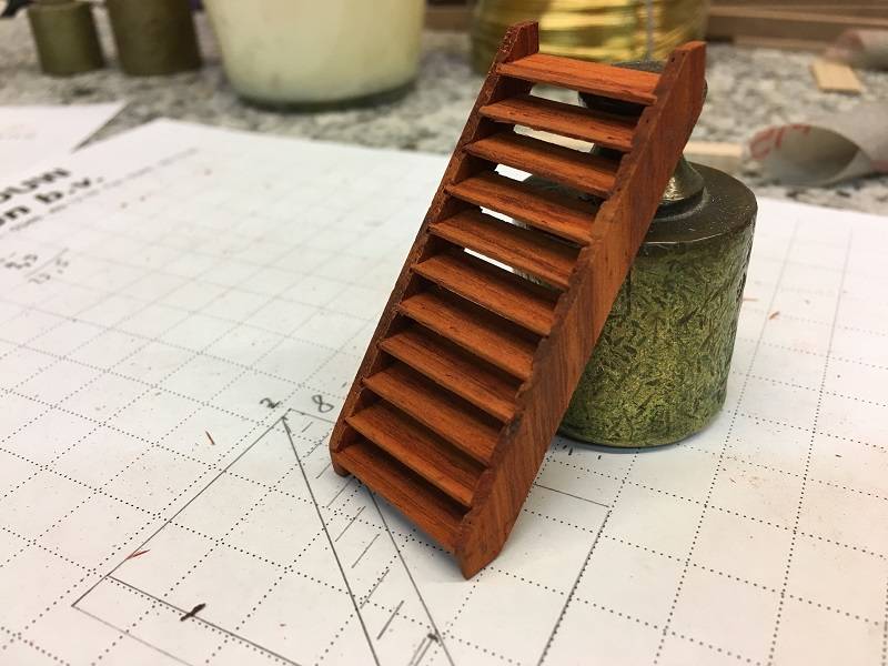 Between the Lower Deck and the Orlop Deck there are 4 stairs that connect these decks. There are several ways to make these stairs. Mine is a bit more extensive, but this way the steps always look good.