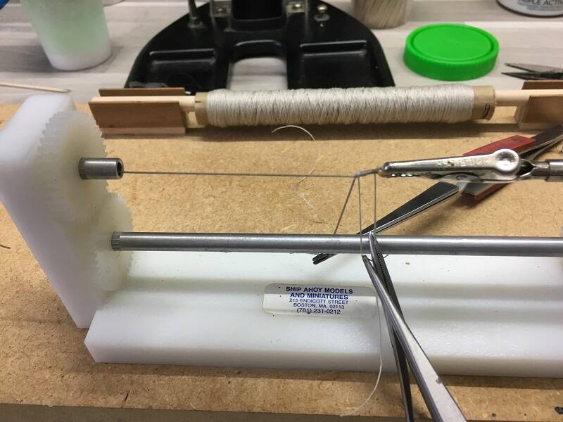 In the coming weeks I will start with the production of the guns. Then I can place them on the gun carriages and finish the assembly. In the meantime I'm sorting out the ropes. I also make the ropes for the tackles, etc., and the 'Rigging Blocks' myself and that takes some preparation. With all the subprojects, the current project has grown a little bigger than I had thought. It all makes it more fun to do.
