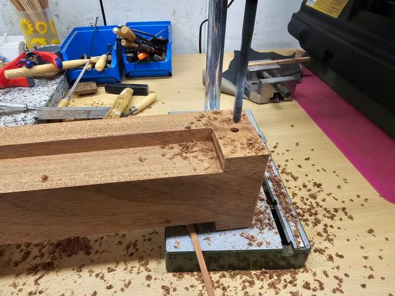 In the meantime, I also sawed the wood for the steering wheel and prepared it further. I chose to make the steering wheel from dark walnut wood.