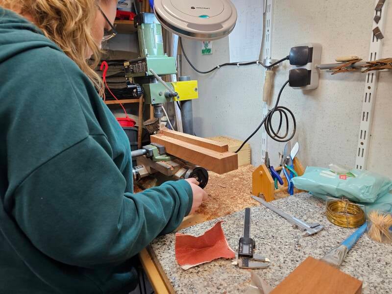 Where necessary, the wood is provided with a piece of ash so that I can place it in the equipment for further processing.