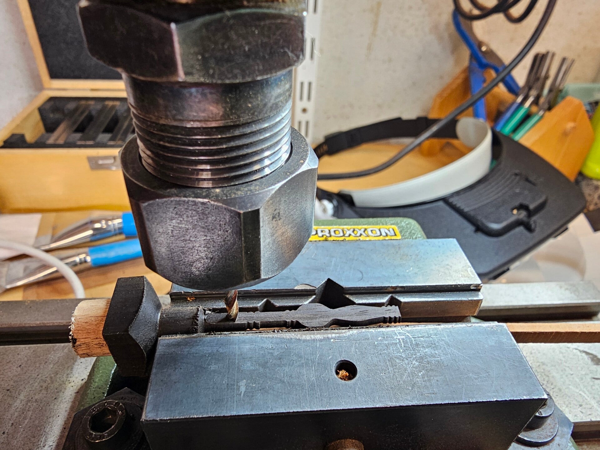 I did this using the milling machine in conjunction with the dividing device. As everything was still quite fragile, I proceeded in increments of 0.2 mm.