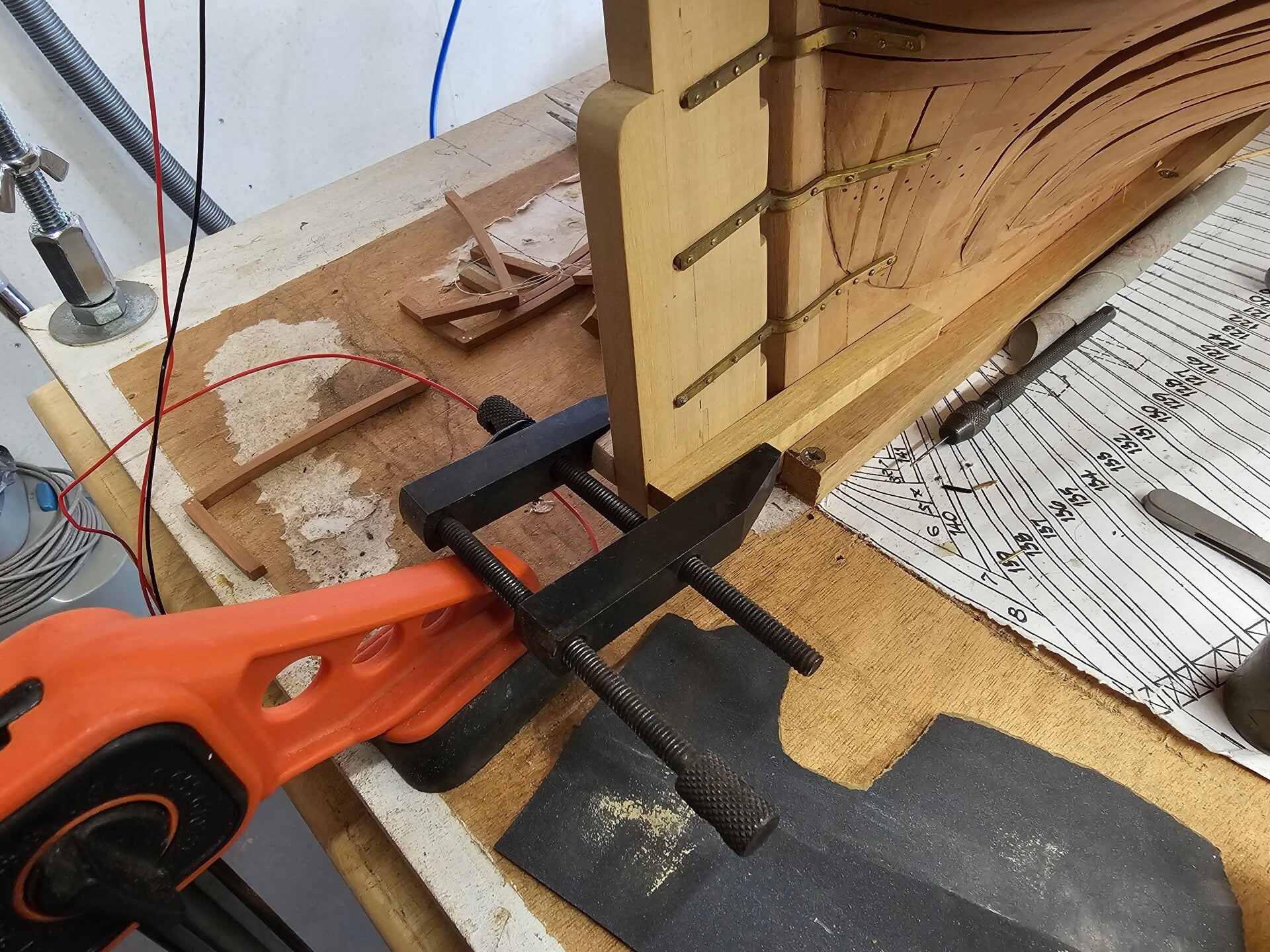 In addition, I have also started a small project to make the tackles for the cannons again. It had been a while since I made the last ones, but we haven't forgotten how. I have to make a total of seven sets of tackles for the cannons on the quarterdeck. First, I started by bending the hooks and then cutting the necessary ropes to length.